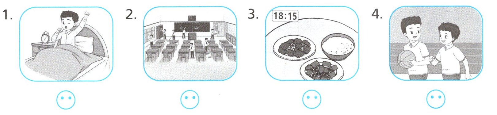 3. —What time is it? —It's six thirty. It's time for dinner.