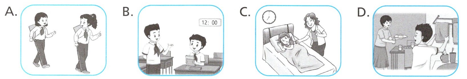 ) 4. —It's twelve o'clock. It's time to have lunch.—All right. Let's go.