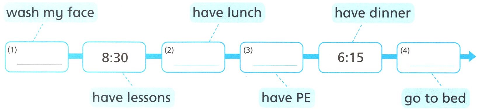 ) 2. —What time is it, Mum?—It's seven twenty. Come and have breakfast.