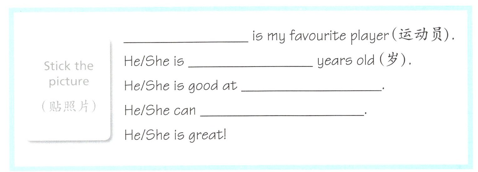 E Stick and write(选择一名你最喜欢的运动员,贴上照片并完成介绍)选做题