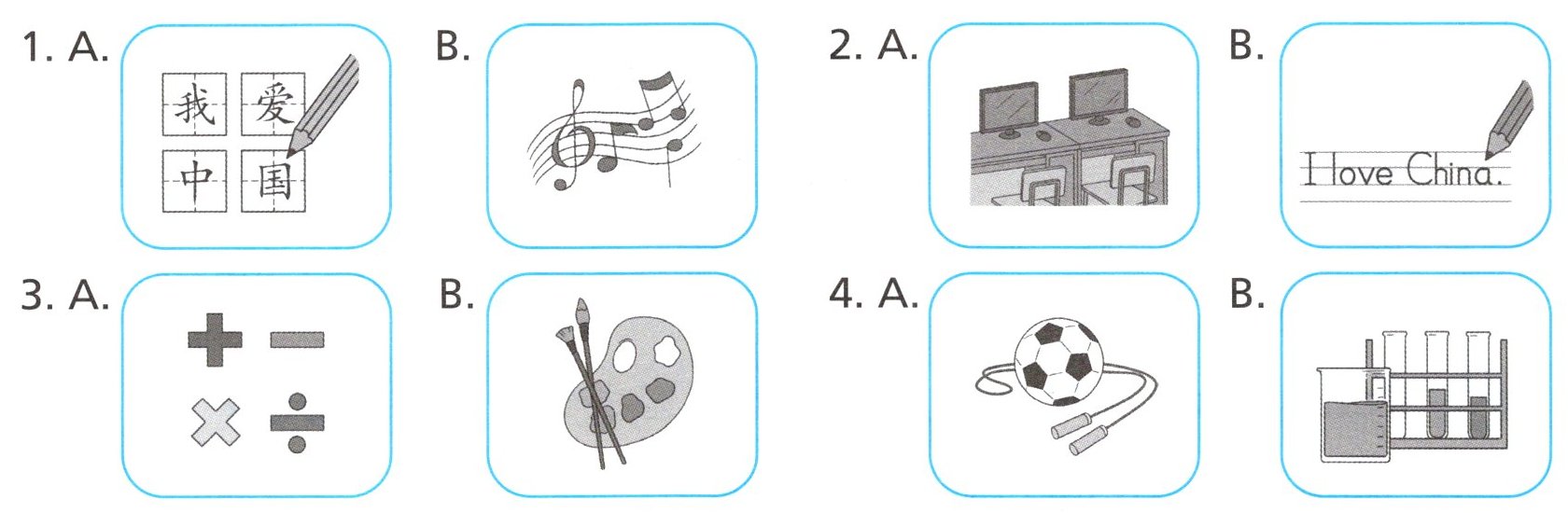 A Listen and circle (听录音, 圈出与所听内容相符的图片)