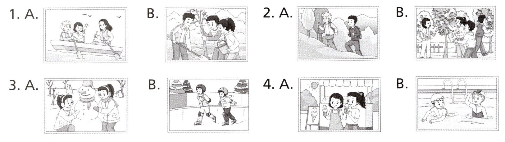 A Listen and circle (听录音,圈出与所听内容相符的图片)
