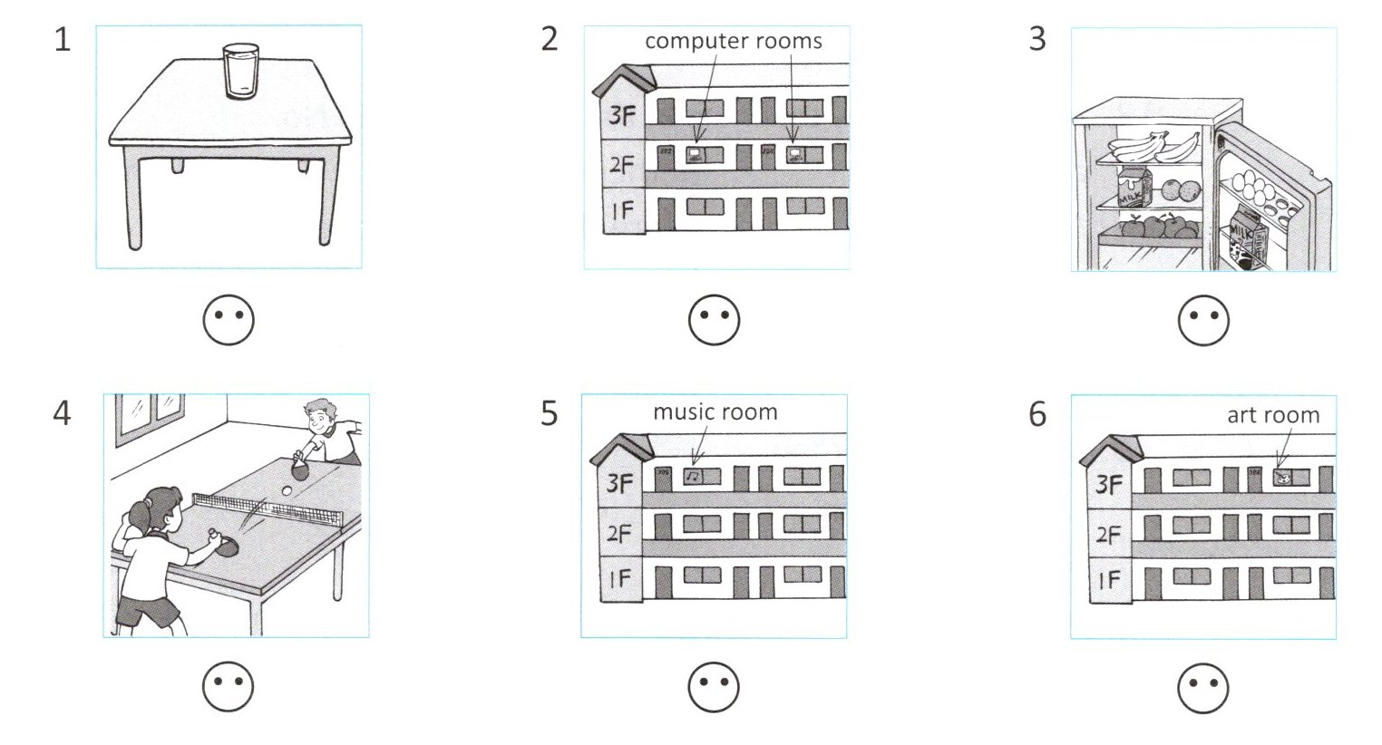 1 😞 2 😊 3 😊 4 😊 5 😞 6 😊