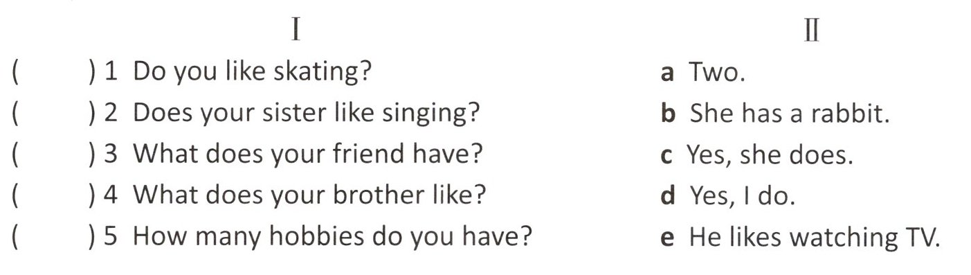 E Read and match(从Ⅱ栏中选出Ⅰ栏句子相应的答句)