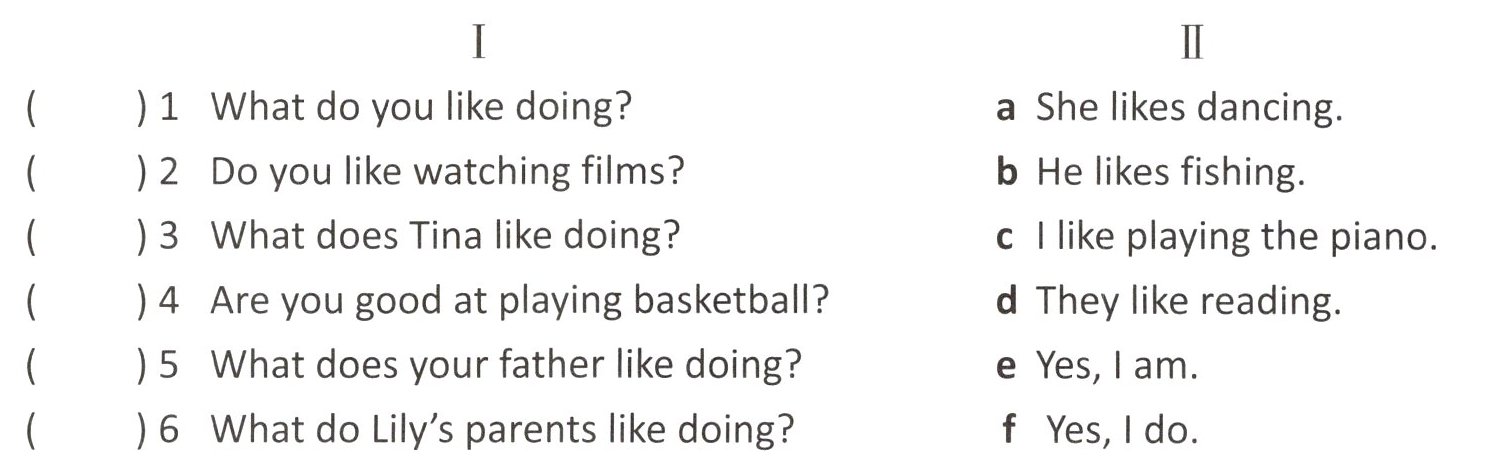 H Read and match(从Ⅱ栏中选出Ⅰ栏句子相应的答句)