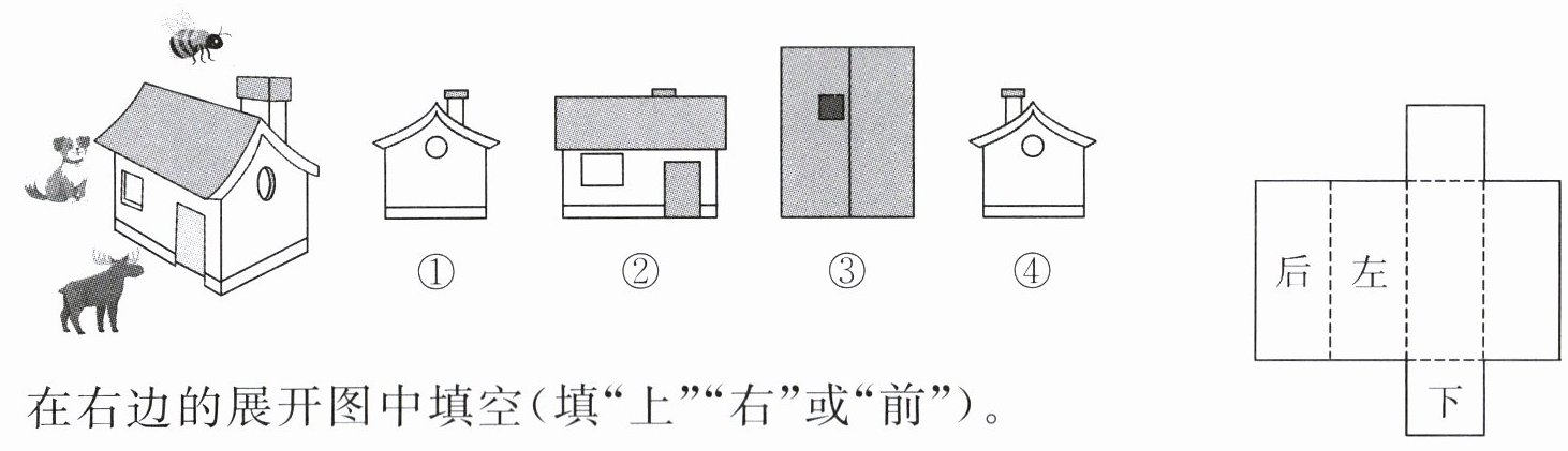 2. 在右边的展开图中填空(填“上”“右”或“前”)。