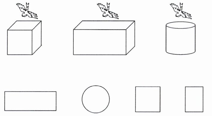 2. 小鸟从上面看立体图形,分别看到了怎样的平面图形?