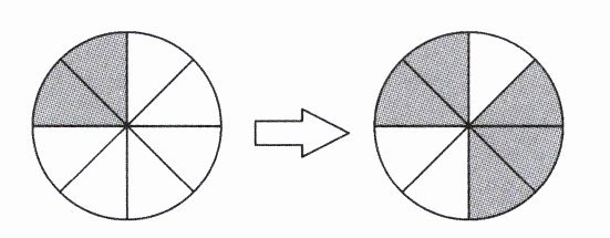 (2) $\frac{2}{8}+\frac{3}{8}=\frac{5}{8}$