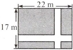 6. 如图,在一块长为 22 m,宽为 17 m 的矩形地面上,要修建两条同样宽的互相垂直的道路(两条道路分别与矩形的一条边平行),剩余部分种上草坪,使草坪面积是 $300 m^{2}$,求道路的宽.