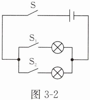 1. 图 3 - 2 是两个小灯泡($L_1$、$L_2$)并联的电路图,开关$S$为干路开关,开关$S_1$、$S_2$为支路开关。