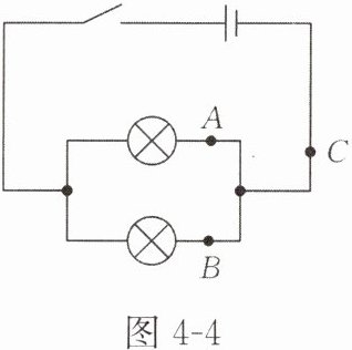 (1) 如图 4-4 所示,将电流表分三次分别接入电路中的 A、B、C 三点。