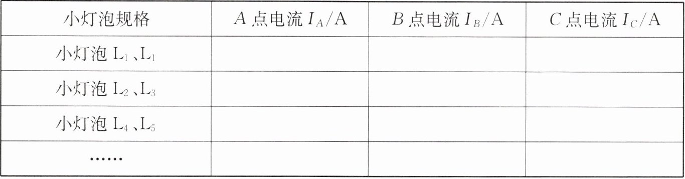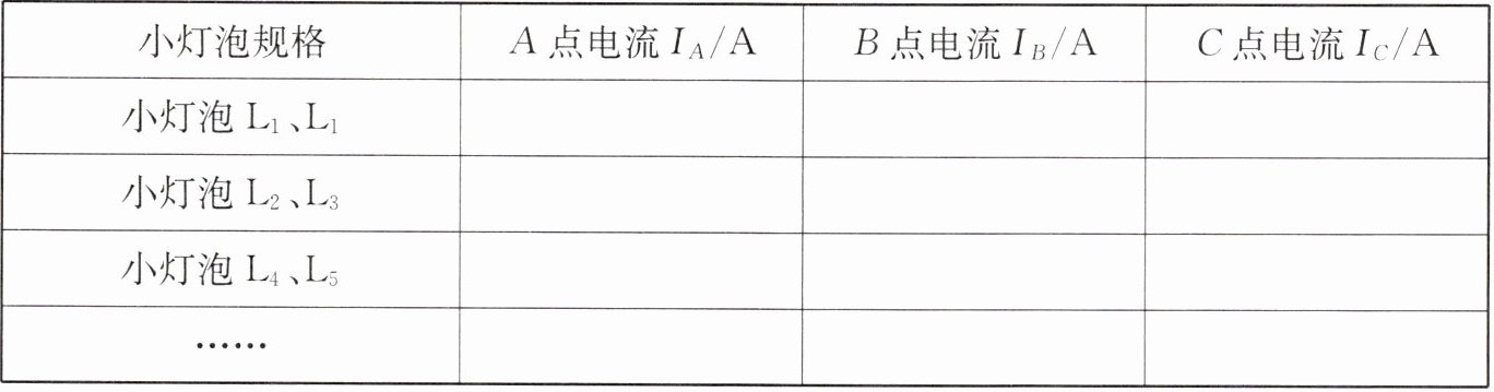 (2) 选择两个规格相同的小灯泡,根据电路图连接电路,并进行测量。