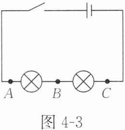 (1) 如图 4-3 所示,将电流表分三次分别接入电路中的 A、B、C 三点。