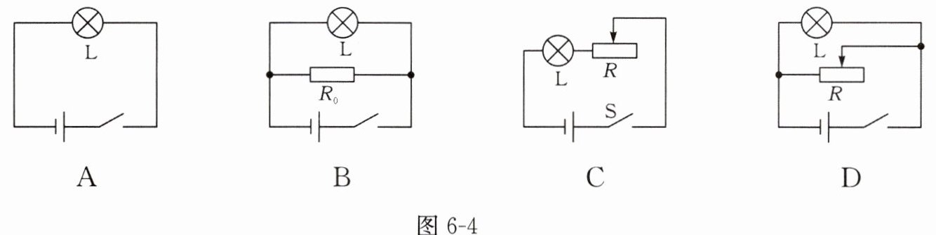 例题 1 图 6 - 4 所示是小明设计的一盏能调节亮度的台灯 L。下列符合要求的电路图是(