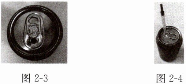2. 在易拉罐上打一个小孔(比笔芯直径略大),如图 2 - 3 所示,再将饮料倒出来。