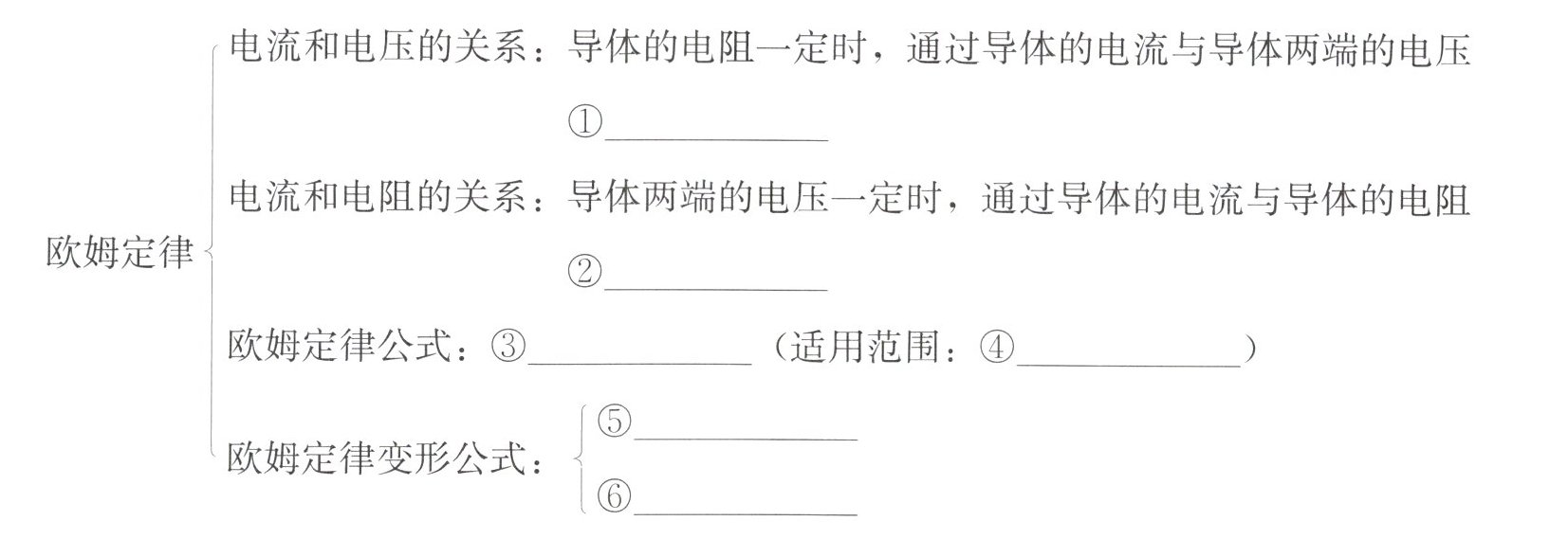 - 电流和电压的关系:导体的电阻一定时,通过导体的电流与导体两端的电压①
