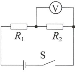 8. 如图所示的电路中,电源两端的电压为6V且保持不变,一个定值电阻的电阻$R_1$为10Ω。闭合开关$S$后,电压表的示数为2V,求另一个电阻为$R_2$的定值电阻在100s内消耗的电能。