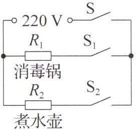 (2)两个定值电阻同时正常工作时,开关S、S₁、S₂均闭合,R₁与R₂并联。