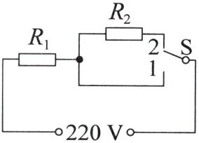 则 $R_1$ 的阻值为$R_1 = \frac{U}{I_高} = \frac{220V}{4A} = 55\Omega$。
