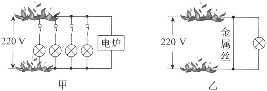 5. 家庭电路中造成电线燃烧的原因如图所示,其中甲情况表示的原因是