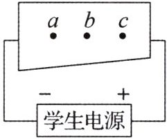 13. 某同学在物理课上表演一个小魔术,用如图所示的金属片点燃火柴。他将此金属片接在学生电源上,则最容易将火柴点燃的位置是(