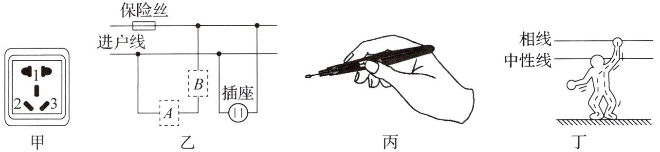 )。A.图甲中,两孔插座和三孔插座是串联的,三孔插座的孔“1”接保护线