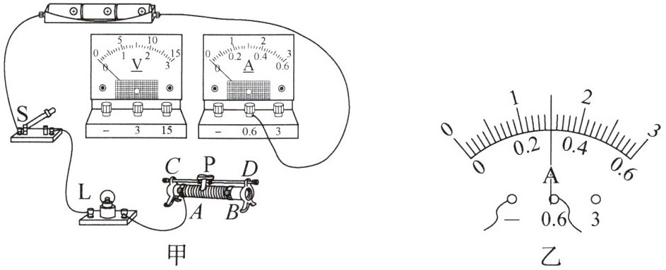 (3)闭合开关后,电压表示数是 2.5 V,应将滑片向______(选填“A”或“B”)端移动,直至电压表示数为______V,此时电流表示数如图乙所示,则小灯泡的额定功率为______W。