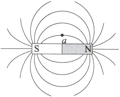 在磁体外部,磁感线总是从N极出发,回到S极。图中磁体右端为N极,左端为S极,a点位于磁体外部,所以a点的磁感线方向是从N极指向S极的方向,即向左。