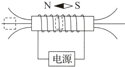 3. 磁场方向:螺线管外部磁感线从N极(右端)出发回到S极(左端),故螺线管上方磁场方向向左(用箭头向左标出)。