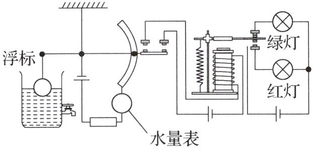 (选填“电流表”或“电压表”)改装而成的。当水量较低时,指示灯中会亮的是红灯