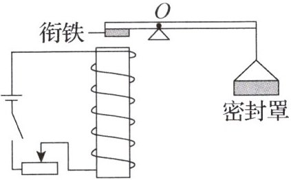 2. 酿酒坊里的发酵罐配有笨重的密封罩,为了方便操作,工作人员设计了一个包含杠杆和电磁铁的组合系统来升降密封罩,如图所示。装置通电后,电磁铁上端为