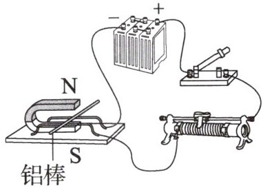 机;断开开关,对调电源正、负两极,重新接入电路,再次闭合开关,观察到铝棒向右