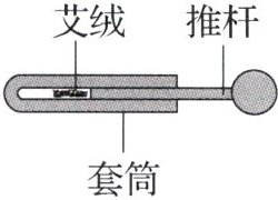 2. 我国古代发明的一种点火器模型如图所示,把推杆迅速推入牛角套筒时,套筒内空气被压缩,推杆前端的艾绒立刻燃烧起来。套筒内空气被压缩的过程中机械能转化为