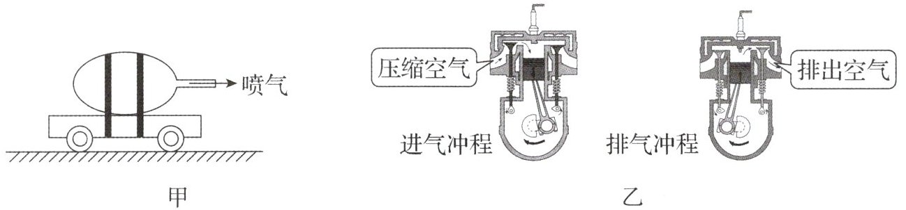 (1)为制造压缩空气动力车,工程师将装有压缩空气的钢瓶与空气动力发动机连接,该发动机的一个工作循环分为进气冲程和排气冲程,如图乙所示。发动机对外做功的是