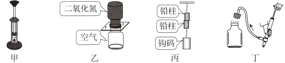 C.丙中,紧压两铅柱使其合在一起,悬挂钩码也未能将其拉开,这是因为分子间存在斥力