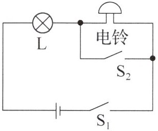 8. 小明实验时连接了如图所示的电路,闭合开关$S_1$和$S_2$后,下列分析正确的是(