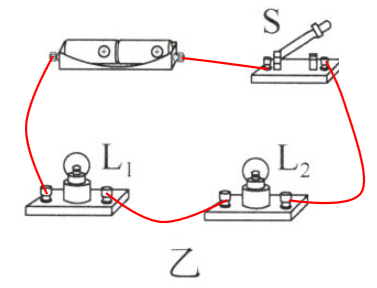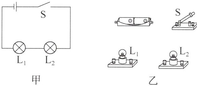 10. 用笔画线表示导线,按照图甲所示的电路图,将图乙中各元器件连接起来,注意连线不要交叉。