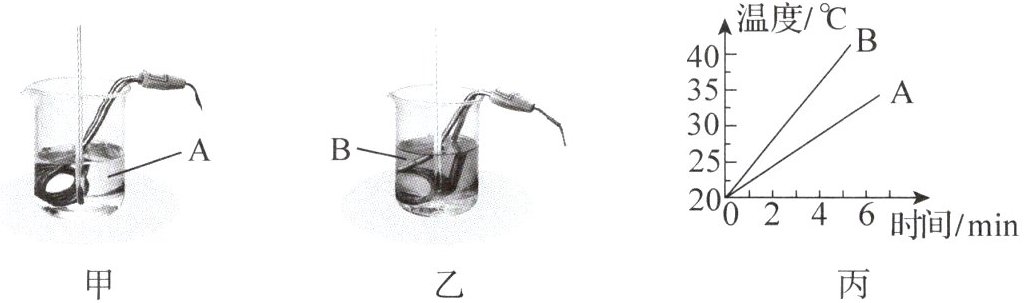 13. 为了探究不同物质的吸热情况与物质种类的关系,小强用两个规格相同的电加热器,分别给初温相同的 A、B 两种物质加热,实验装置如图甲、乙所示。