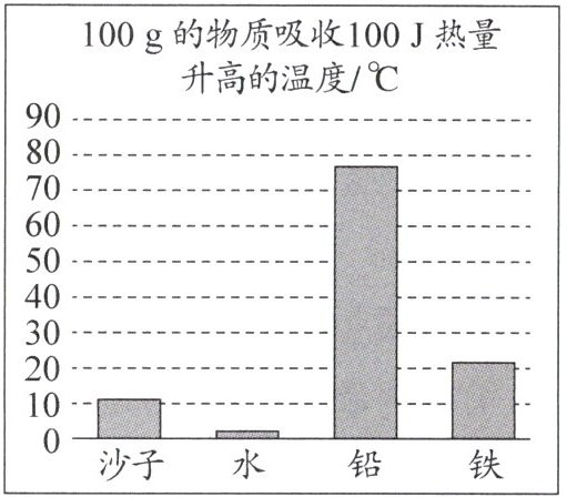 C.质量相等的水和沙子,吸收相同的热量,沙子的末温高