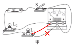 2. 请你在第1题图甲所示电路的基础上,只改变一条导线使电流表测量干路电流,在要改变的导线上画“×”,用笔画线表示新的导线,注意导线不要交叉。