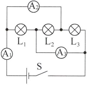 1. 电路分析:由电路图可知,灯泡$L_1$、$L_2$、$L_3$并联。电流表$A_1$测干路总电流,$A_2$测$L_1$和$L_2$的电流之和,$A_3$测$L_2$和$L_3$的电流之和。