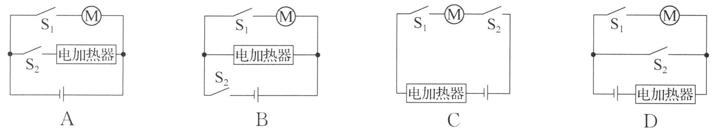 3. “浴霸”里的电加热器和换气扇能独立工作、互不干扰,下列图中符合要求的电路是(