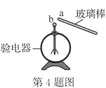 4. 如图所示,用丝绸摩擦过的干燥玻璃棒 a 接触原来不带电的验电器的金属球 b 时,金属球 b 也带上了电荷。此过程中,瞬时电流的方向为