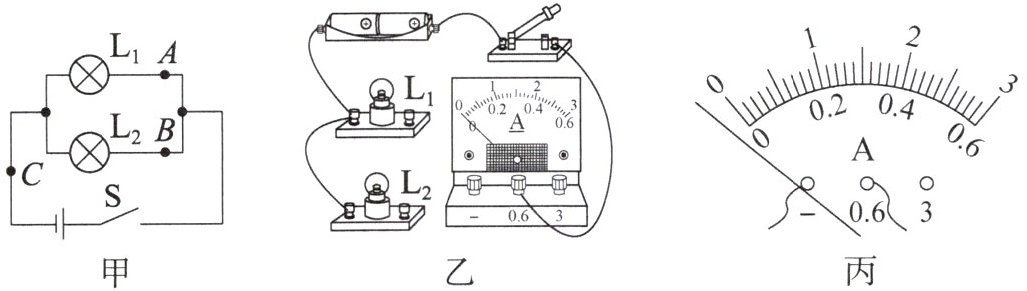 (3)请你根据电路图将图乙的实物图连接完整,要求电流表测量 A 点的电流。