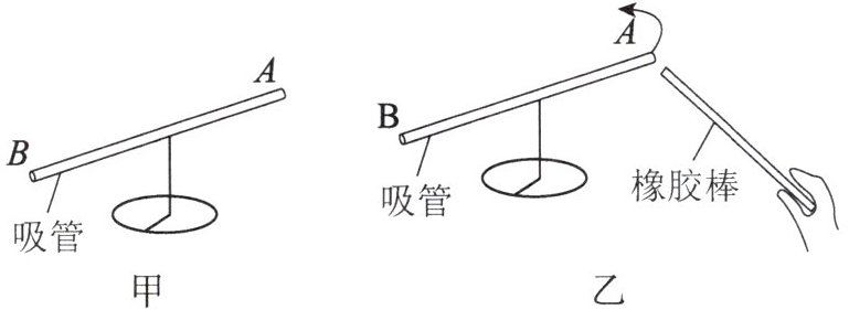 (2)小明把毛皮摩擦过的橡胶棒放在吸管的一端附近,观察吸管运动的方向,如图乙所示,则吸管带的是