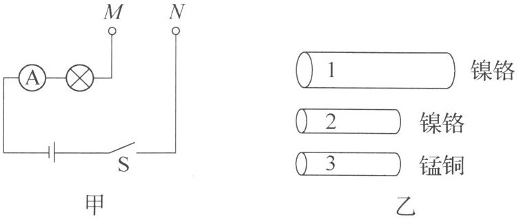 6. 同学们利用如图甲所示的电路探究影响导体电阻大小的因素,其中电阻丝1、2、3的材料如图乙所示,电阻丝2、3的长度相同、粗细相同,电阻丝1的长度最长、横截面积最大。下列说法正确的是(