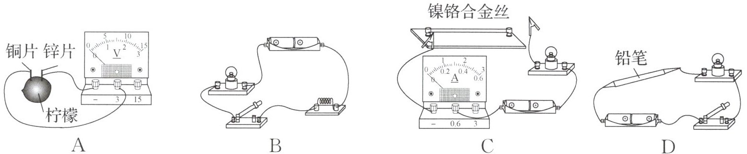 D(更正为C,因D只是简单改变长度未系统模拟变阻器,C能较好模拟通过改变接入长度改变电阻) ,本题应选C。