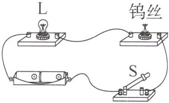 3. 如图所示,将一个白炽灯去除玻璃罩,钨丝暴露在空气中。闭合开关$S$,小灯泡$L$发光,钨丝不发光;向钨丝吹气时,小灯泡$L$变亮;用酒精灯给钨丝加热,小灯泡$L$逐渐变暗直至熄灭。由实验可知(