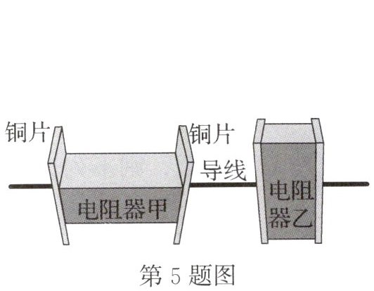 5. 若两个材料、外形均相同的实心长方体金属电阻器甲和乙,按如图所示的方式接到某电源两端,则通过甲的电流