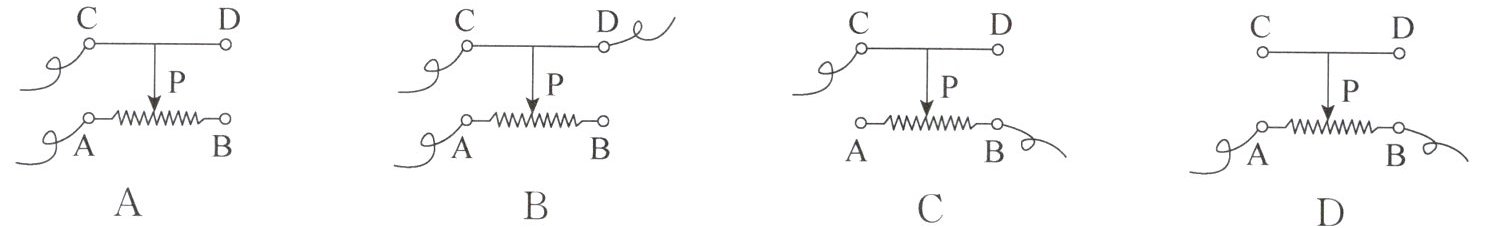12. 滑动变阻器连入电路的接线柱如图所示,当滑片P向左滑动时,连入电路的电阻变大的是(
